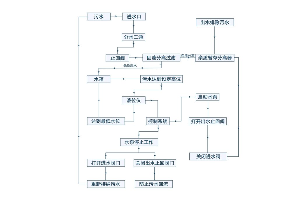 采用雜物污水分離器結構,使水泵與可纏繞型雜物不接觸,避免雜物纏繞堵塞水泵葉輪好而燒壞水泵電機;具有反沖洗功能,使得設備內不會(huì )產(chǎn)生沉淀,實(shí)現了無(wú)沉淀,免清掏,大大節約了設備運行和管理維護的成本。